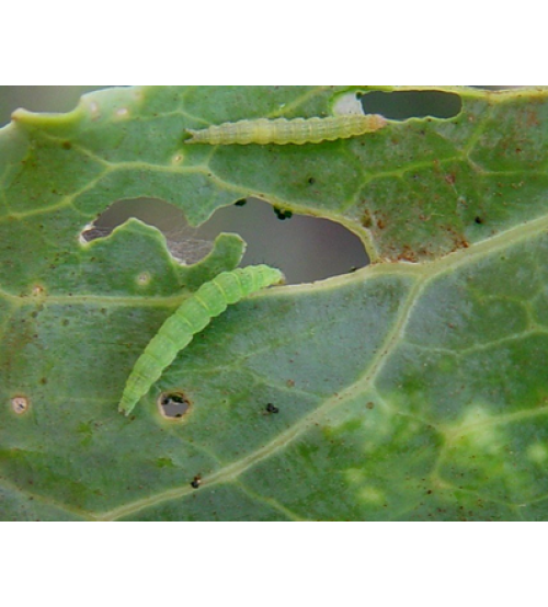 Plant damage is caused by larval feeding. Although the larvae are very small, they can be quite numerous, resulting in complete removal of foliar tissue except for the leaf veins. This is particularly damaging to seedlings, and may disrupt head formation in cabbage and cauliflower.