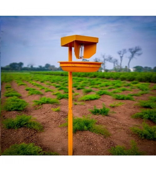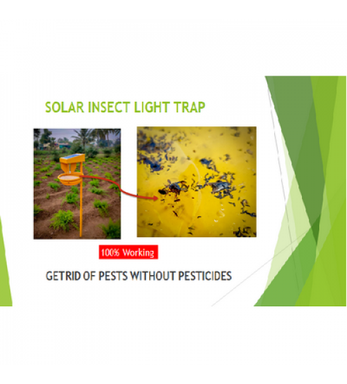 Description:Chipku insect solar trap is a device for pest control. The device gets charged in day time using sunlight and automatically switches on at dawn to trap harmful insects. Solar Chargeable and Automatic Timer Device Turn on by sunset and Turn Off after 4 hours continuous operation. It trap the fly insect by a wave in long distance, and trap by light in short distance then kill them by Deeping into the water and Oil layer in The Round Yellow Tub located below the light.