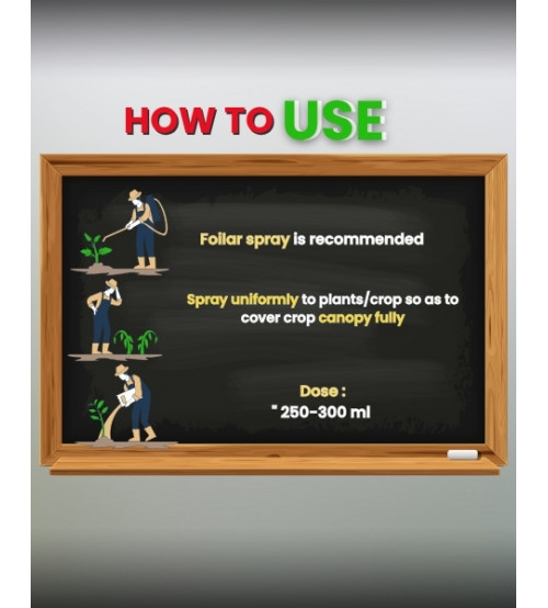 - Large Scale Application: 250-300 ml per acre for foliar spray.